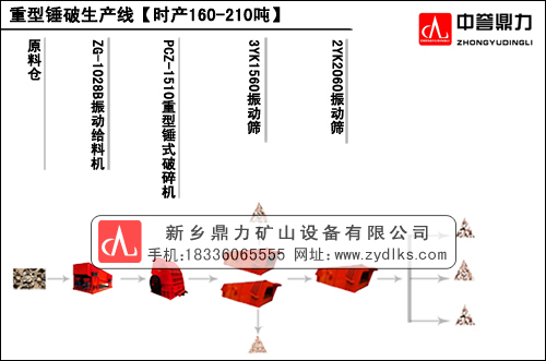 采石場的石頭先經(jīng)過爆破,用挖機(jī)和裝載機(jī)將石頭運(yùn)至料倉,經(jīng)料倉進(jìn)入振動給料機(jī),大塊石料由振動給料機(jī)均勻地送進(jìn)重型錘式破碎機(jī)進(jìn)行粗碎,粗碎后的石料由皮帶輸送機(jī)送到整形式破碎機(jī)進(jìn)行進(jìn)一步破碎。細(xì)碎后的石料送進(jìn)振動篩進(jìn)行篩分,然后按要求篩分出不同規(guī)格的石子。符合粒度要求的有輸送帶運(yùn)輸至成品料堆,不符合要求的進(jìn)行二次破碎。如果想建設(shè)環(huán)保型生產(chǎn)線可配備除塵設(shè)備。至此,一個完整的生產(chǎn)過程得以完成。下圖以時產(chǎn)2000噸石料生產(chǎn)線流程圖為例,供大家參考。