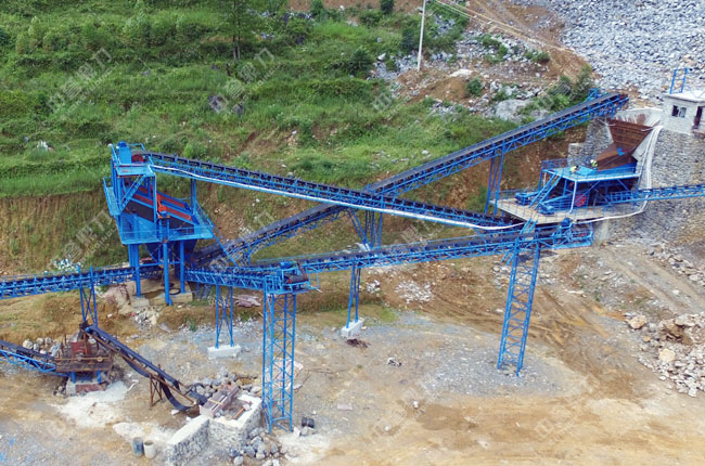 配置介紹:該方案是我公司2017年為廣西河池某石料廠設(shè)計(jì)配置,選用時產(chǎn)300噸左右的1512重錘破,可以一次將原料石灰石破碎成型,通過3層振動篩篩分出1-3、1-2、0-5多種規(guī)格的石料。