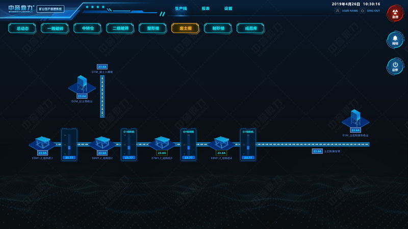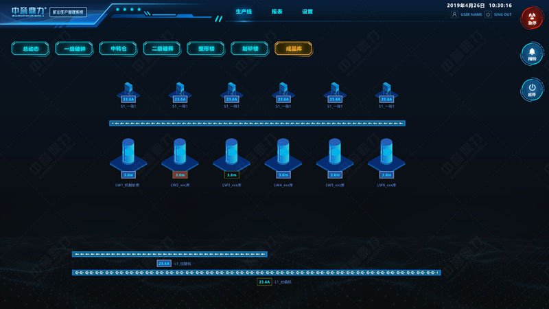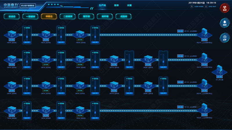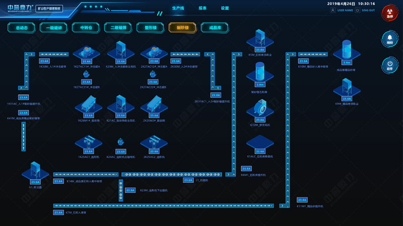 中譽鼎力礦山生產(chǎn)管理系統(tǒng)(又叫DCS超級中控系統(tǒng)),是為實現(xiàn)礦山智能化、自動化生產(chǎn)而開發(fā)的可視化生產(chǎn)管理系統(tǒng)。