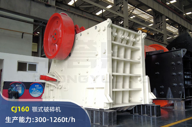 CJ160顎式破碎機時產(chǎn)量在300-1260噸左右,進料粒度960mm,出料大小150-300mm,屬于中等產(chǎn)量的鄂破,一般用在中型碎石生產(chǎn)線上。