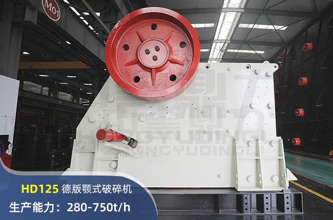 HD125顎式破碎機(jī)也叫鄂破,進(jìn)料口尺寸在950×1250mm,進(jìn)料粒度900mm,出料大小125-225mm。電機(jī)功率8p 160kw,時(shí)產(chǎn)可達(dá)750噸。