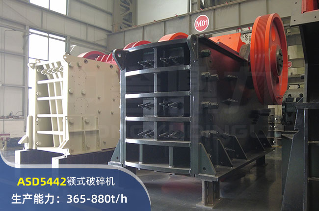 ASD5442顎式破碎機進料口尺寸1370×1070mm,進料粒度≤1020mm,出料大小≤90mm,電機功率185kw,時產(chǎn)量365-880噸左右。