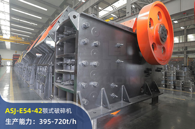 ASJ-E54-42顎式破碎機(jī)進(jìn)料口尺寸1370×1070mm,進(jìn)料粒度≤1020mm,出料大小≤125mm,電機(jī)功率185kw,時(shí)產(chǎn)量在720噸左右。