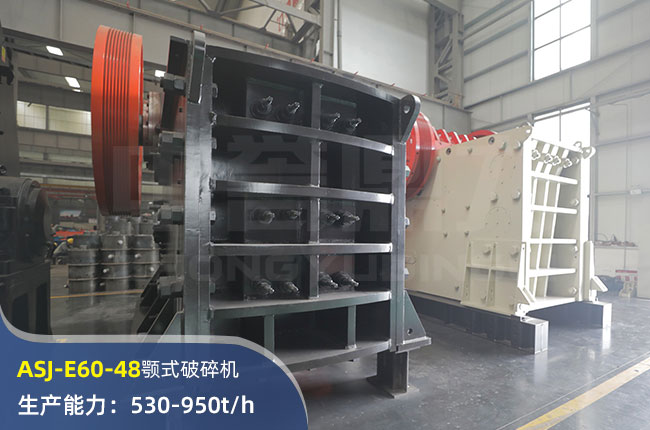ASJ-E60-48顎式破碎機(jī)進(jìn)料口尺寸1520×1220mm,進(jìn)料粒度≤1200mm,出料大小≤150mm,電機(jī)功率220kw,時(shí)產(chǎn)量在950噸左右。