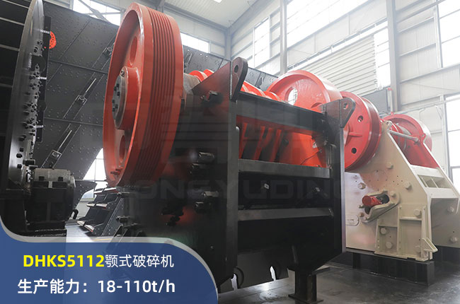 DHKS5112顎式破碎機進料口尺寸1300×300mm,進料粒度240mm,出料大小20-90mm,電機功率75kw,時產(chǎn)量在110噸。