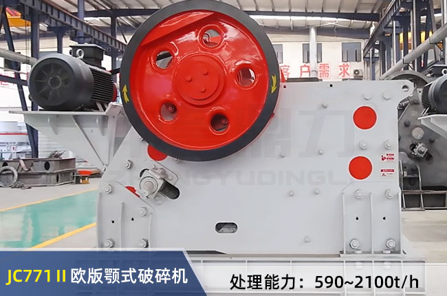 JC771II歐版顎式破碎機(jī)進(jìn)料口大小1800×1500mm,這里1800指進(jìn)料口寬,1500mm指進(jìn)料口深度,設(shè)備出料調(diào)節(jié)范圍在150-400mm,每小時產(chǎn)量在590-2100噸,電機(jī)功率為315-400kw,采用電機(jī)與主機(jī)一體式設(shè)計,可節(jié)省占地面積。