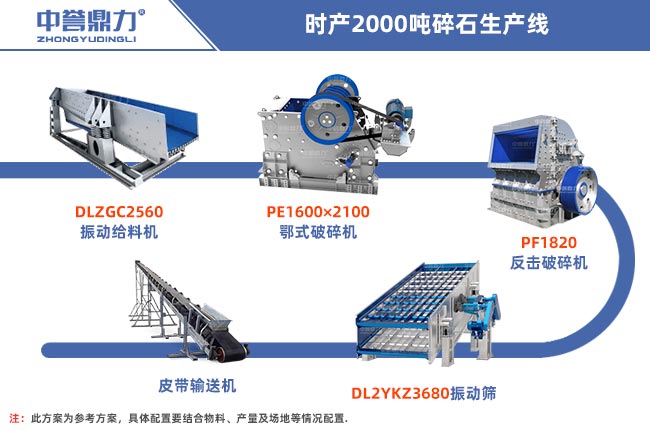 日產(chǎn)2萬(wàn)噸石子生產(chǎn)線即時(shí)產(chǎn)2000噸石子生產(chǎn)線,一天工作10小時(shí),具體配置可以用DLZGC2560振動(dòng)給料機(jī)、PE1600×2100顎式破碎機(jī)、PF1820反擊式破碎機(jī)、DL2YKZ3680振動(dòng)篩、輸送機(jī)等設(shè)備。本金充足條件許可的話,還可以搭配脈沖袋式除塵器減少粉塵污染,還有生產(chǎn)管理系統(tǒng)、自動(dòng)裝車(chē)系統(tǒng)等智能化生產(chǎn)線軟件。配置清單如下:
