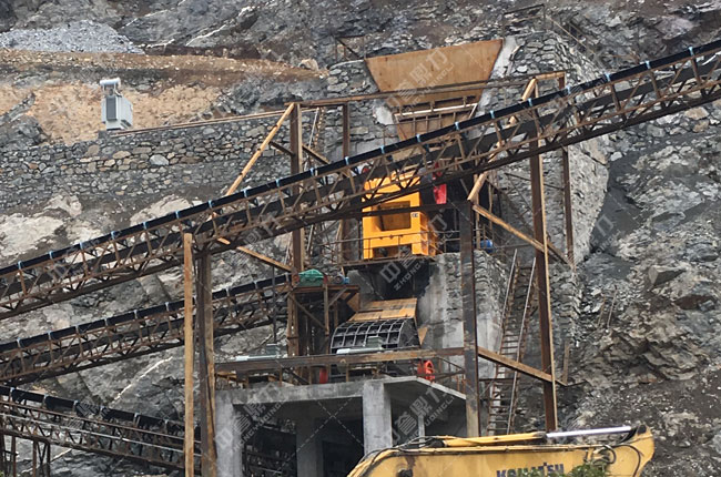 主要設(shè)備:ZSW490x130振動(dòng)給料機(jī)、HD125顎破機(jī)、PF1820反擊破、3YK2870振動(dòng)篩兩臺(tái)、3YK2460振動(dòng)篩兩臺(tái)、VSI1145制砂機(jī)、原料倉(cāng)、輸送機(jī)等