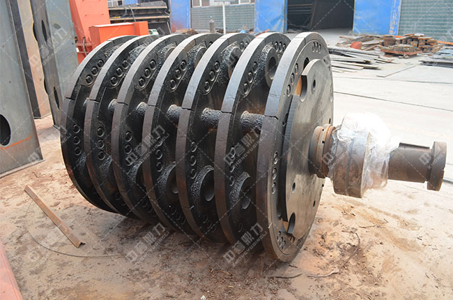 反擊錘式破碎機轉(zhuǎn)子是主要零件,它由錘盤、端盤、隔環(huán)、錘頭、錘軸、主軸、皮帶輪、軸承和軸承座等組合。