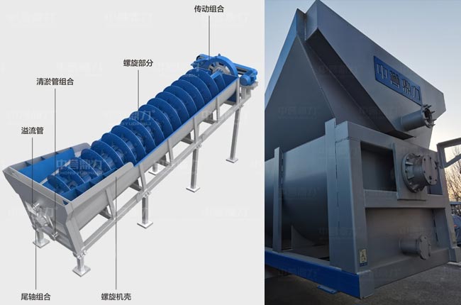 絞龍洗沙機水里那頭無傳動組,屬于螺旋洗砂機的尾部,尾部軸承外置于水槽外,避免臟水污染軸承。整機傳動組合在高處,通過電機和減速器帶動軸承旋轉(zhuǎn),葉輪翻轉(zhuǎn)。