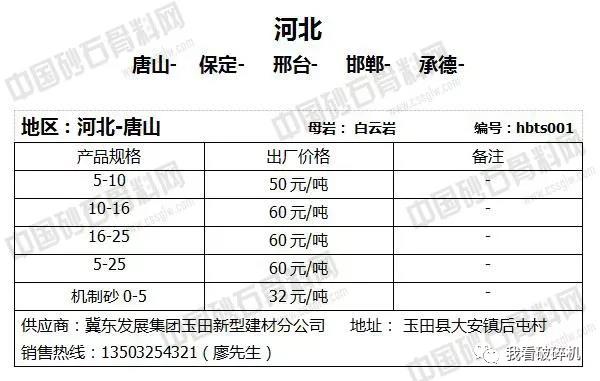 湖北地區(qū):黃石砂石價(jià)格下調(diào)2元/噸。
