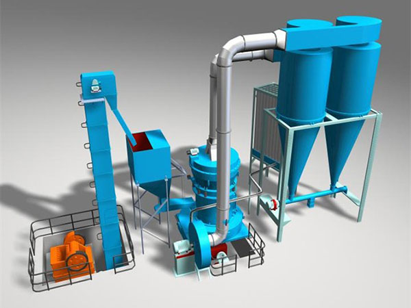 原巖石→喂料機(jī)→pe顎式破碎機(jī)→篩石子設(shè)備→電磁震動(dòng)喂料機(jī)→磨粉機(jī)→螺旋分級(jí)機(jī)→高頻篩→磁選機(jī)→濃縮機(jī)