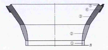 (1)模樣制作工藝CH660單缸圓錐破碎機(jī)動(dòng)錐、定錐襯板采用消失模分部制作粘合整體手工修正模樣制作完成。須工序合理,定位選擇準(zhǔn)確,模樣垂直度和同軸度要求。動(dòng)錐襯板:按圖1所示工藝制作模樣,在圓周方向六等分,高度方向分5部分進(jìn)行樣板放樣,分部制作模樣;以A 面為基準(zhǔn),逐步粘合①~⑤部分,校準(zhǔn)各部分模樣同軸度;按工藝圖要求進(jìn)行整體手工修整,模樣準(zhǔn)確與完整。定錐襯板:按圖2所示工藝制作模樣,在圓周方向六等分,高度方向分三部分進(jìn)行樣板放樣,制作模樣;以B 面及內(nèi)外徑為基準(zhǔn),先對(duì)①、②、③主體部分粘合校正,再粘合法蘭④,整體校正后,后分度粘合12個(gè)定位銷⑤。按工藝圖要求進(jìn)行整體手工修模。