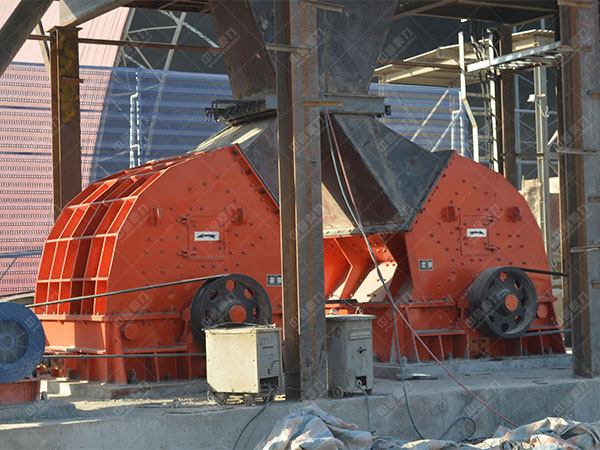 對(duì)輥破碎機(jī)由輥輪、輥輪支撐軸承、壓緊和調(diào)節(jié)系統(tǒng)和推動(dòng)系統(tǒng)等部分構(gòu)成,作業(yè)時(shí),將加工物料經(jīng)喂料口落入兩輥?zhàn)又g,進(jìn)行擠壓加工,成品物料自然落下,遇有過硬或不可