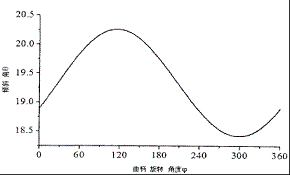 鄂破連桿傾角θ是指連桿軸線與定顎板面之間的夾角,我們根據(jù)上公式和已知條件可以可繪出隨曲柄運行角度θ變化的曲線如圖1所示。