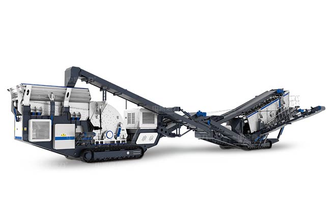 履帶破碎篩分移動站,破碎+篩分于一體、自成一條生產(chǎn)線。