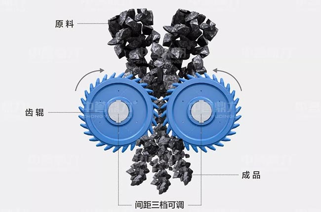 雙齒輥破碎機(jī)工作時(shí),是通過相對(duì)運(yùn)動(dòng)的兩齒輥擠壓、剪切、嚙磨物料,實(shí)現(xiàn)對(duì)物料破碎作業(yè),出料大小采用偏心剛性調(diào)節(jié),成品率達(dá)65%~80%。