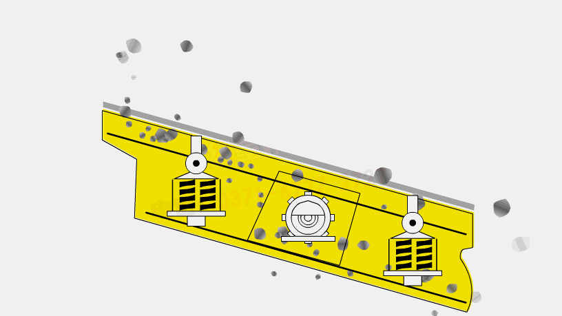 振動篩的運動是由電動機通過三角帶驅(qū)動具有偏心質(zhì)量的激振器,從而使篩機做周期性的不對稱往復(fù)機械振動,使篩面上的物料層松散并離開篩面被拋起,使細(xì)級物料能透過料層下落,通過篩孔分離,并將卡在篩孔中的物料振出,細(xì)級物料向下部移動,通過篩網(wǎng)孔徑大小限制,實現(xiàn)篩選作業(yè)。