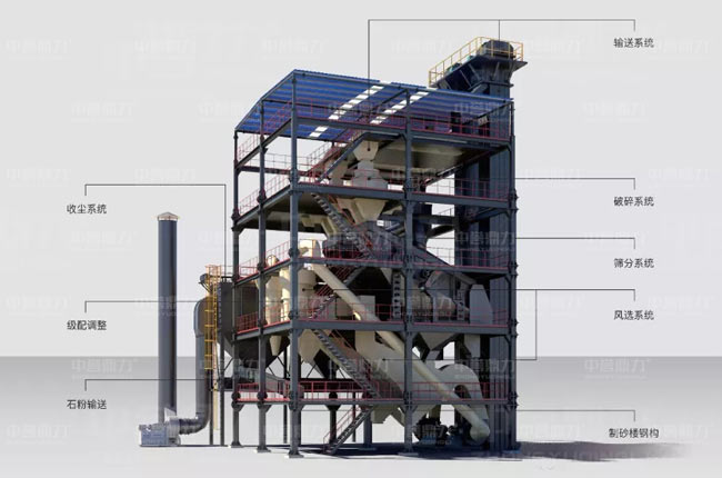 干式制砂樓采用模塊化的工藝設(shè)計,利用立體空間,穩(wěn)定性高,占地面積小,工廠機(jī)械化加工,提高安裝精度,現(xiàn)場組裝更方便快捷。環(huán)保型制砂整形系統(tǒng)更加人性化的設(shè)計,設(shè)備檢修更加方便。