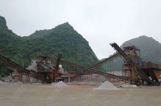 廣西來賓這了800噸的石料破碎生產(chǎn)線是由ZG2028給料機(jī)、PCZ1620重錘破、4YKZ3070振動(dòng)篩等設(shè)備構(gòu)成,主要生產(chǎn)的是12石子、13石子、石粉。