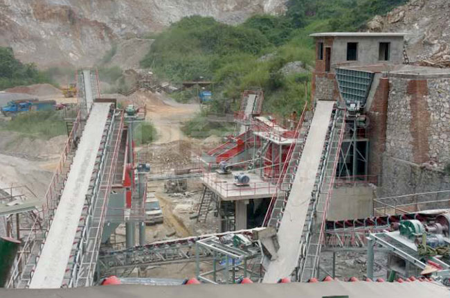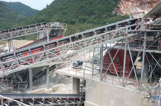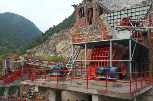 該時(shí)產(chǎn)800噸的石灰石破碎生產(chǎn)線是中譽(yù)鼎力建造的,采用的是PCZ1615重錘破、PCZ1216錘式破碎機(jī)、3YKZ3070振動(dòng)篩。生產(chǎn)80-200mm、40-80mm兩種規(guī)格的石子料。