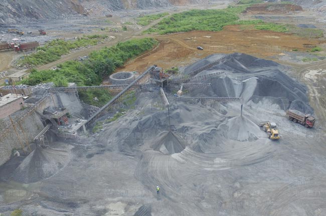 該生產(chǎn)線投產(chǎn)時間是2013年6月,主要生產(chǎn)0—30mm混合料、10—20、10—30mm的石子、瓜米石、石粉等石料,日產(chǎn)量可達3000噸,成品石料應(yīng)用于水泥廠及混凝土攪拌站。