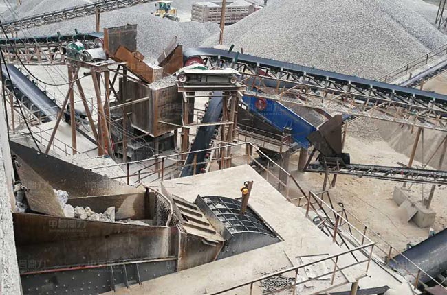 該項目位于廣西來賓,2017年9月投產(chǎn),屬中譽鼎力承建,采用兩段破碎工藝(重錘破+整形破),主要生產(chǎn)05、12、13等多種規(guī)格的石料,供當?shù)鼗A(chǔ)建設(shè)、混凝土攪拌站等使用。