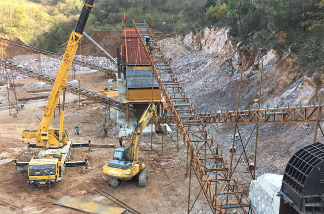 華隆攪拌站時產(chǎn)700噸骨料生產(chǎn)線為新建項目,采用了中譽鼎力pcz1615重錘破、pc1216整形破以及配套給料機、振動篩等設備,主要生產(chǎn)1-3、1-2、0-5、石粉石料,項目已于2018年1月投產(chǎn)使用。