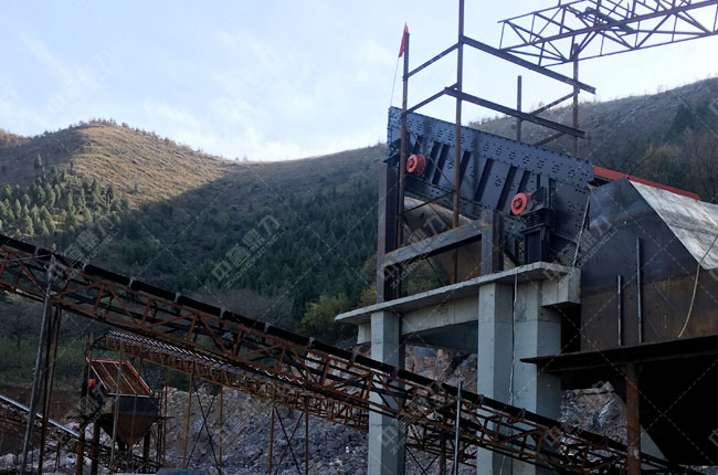石灰石原料由重型錘式破碎機進行粗碎,破碎后大于31mm的石料由皮帶機送至1216整形機二次破碎;破碎后的石料經(jīng)3ykz40100篩分出來的小于1-3的料,會送至2ykz3070篩分,后篩分出1-2/0-5和石粉三種成品料。