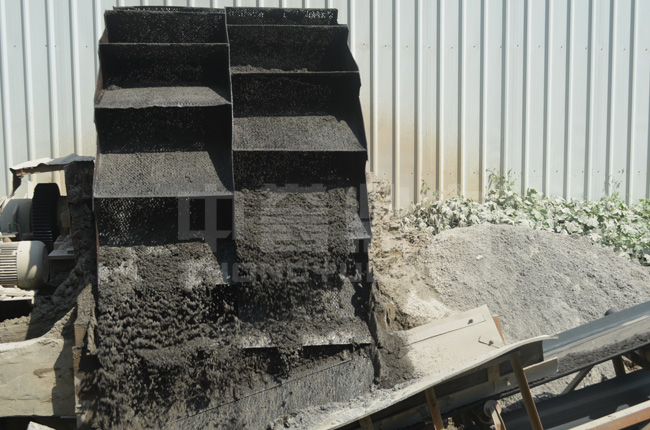 這條300噸的水洗砂生產(chǎn)線,是將破碎后的碎石料經(jīng)過ZSJ1416雙轉(zhuǎn)子制砂機進行細碎制砂,后由2臺DLXS3016輪式洗砂機進行洗沙處理。