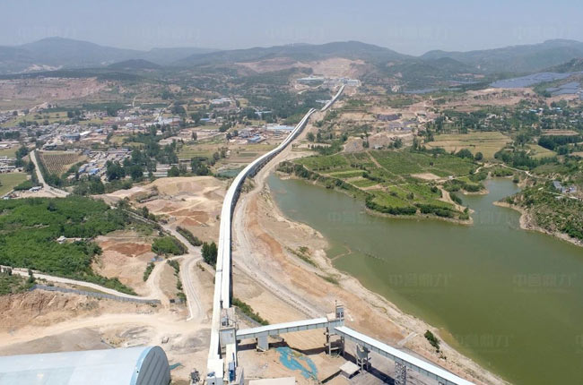 4、半成品混合料通過兩公里長的皮帶長廊輸送到省道旁邊的篩分銷售區(qū)域,山下篩分銷售。