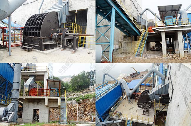 主破碎機和二破安裝現(xiàn)場,進料環(huán)節(jié)都配套了收塵設(shè)備,減少揚塵。