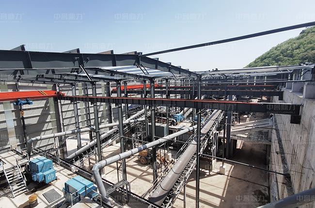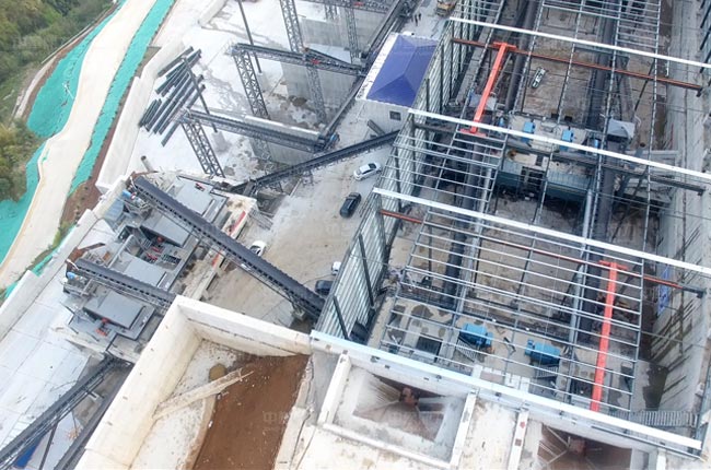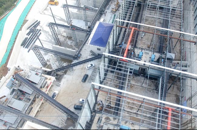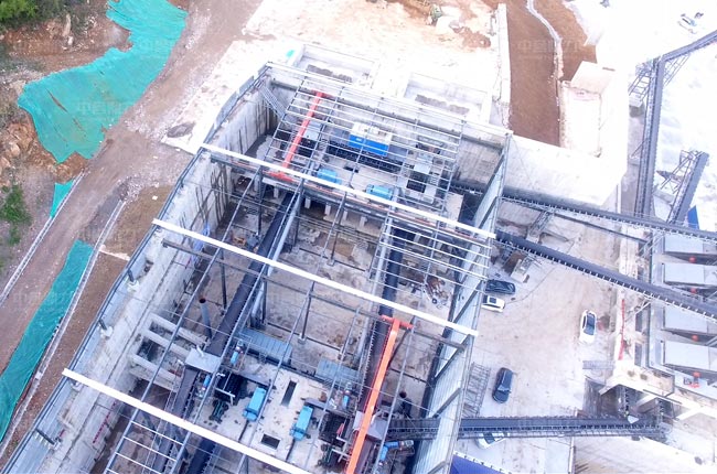 該封閉式砂石料場(chǎng)雙線并行,兩臺(tái)DLZG振動(dòng)給料機(jī)、兩臺(tái)DLPCZ重型錘式反擊破碎機(jī)、兩臺(tái)DLPC整形式破碎機(jī)和多臺(tái)DLYKZ重型振動(dòng)篩及配套輸送、除塵等設(shè)備。