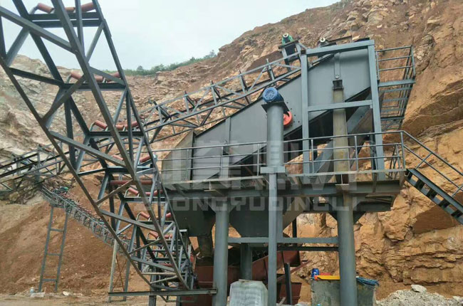 該項(xiàng)目要處理的原石料較小,主要生產(chǎn)機(jī)制砂供混凝土攪拌站使用。中譽(yù)鼎力為其配置的是ZSJ1416雙轉(zhuǎn)子制砂機(jī)即配套篩分設(shè)備。