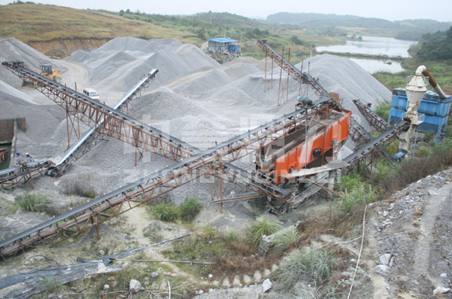 項(xiàng)目是處理石灰石料,要進(jìn)行破碎生產(chǎn)不同規(guī)格的石子,同時(shí)還要生產(chǎn)部分沙。中譽(yù)鼎力為其配置的是“錘式破碎機(jī)+雙轉(zhuǎn)子制砂機(jī)”。