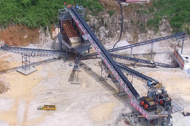 湖南抗應(yīng)洞采石場(chǎng)時(shí)產(chǎn)300噸機(jī)制砂生產(chǎn)線采用500*750顎破機(jī)對(duì)物料進(jìn)行粗碎,通過皮帶機(jī)送至中轉(zhuǎn)料堆,其后再通過皮帶機(jī)將碎石料送至兩臺(tái)ZSJ1213雙轉(zhuǎn)子制砂機(jī)細(xì)碎制砂,然后通過兩臺(tái)3YKZ2470振動(dòng)篩篩分,頭層篩網(wǎng)石料會(huì)通過皮帶機(jī)送至中轉(zhuǎn)料堆再次通過制砂機(jī)加工,其余石料根據(jù)成品皮帶機(jī)送至相應(yīng)的成品料堆。