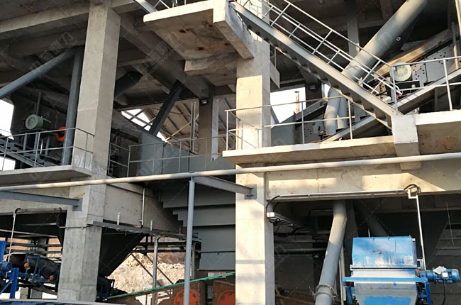 制沙樓稱為干式制砂整形系統(tǒng),又稱塔式制砂樓,其將生產(chǎn)線高度集成式設(shè)計,可以節(jié)省較大的占地空間。該項目引進該塔式制砂系統(tǒng),不僅節(jié)省了土地面積的大筆投資,同時也節(jié)省了輸送設(shè)備的投資,整體投資較小,生產(chǎn)效率較高。
