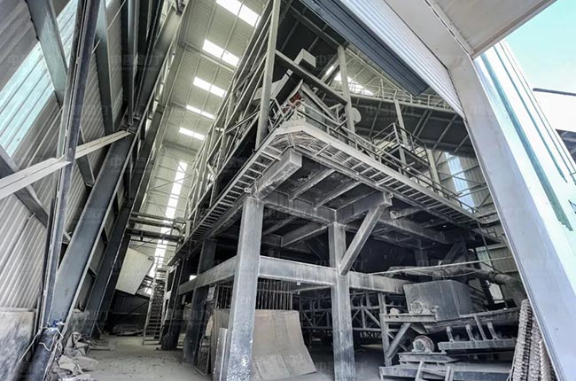 山東永鉅建材時(shí)產(chǎn)一千噸的碎石加工生產(chǎn)線于2020年6月投產(chǎn),是我公司設(shè)計(jì)安裝,整體采用封閉式設(shè)計(jì),采用DLPCZ1815重型錘式反擊破碎機(jī)、DLPC1220整形式破碎機(jī)兩端式破碎,配有雙轉(zhuǎn)子制砂機(jī)生產(chǎn)機(jī)制砂。
