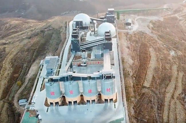銳安建材秉承綠色發(fā)展理念,生產(chǎn)線整體采用封閉設(shè)計(jì),26臺脈沖袋式除塵器、6臺風(fēng)力輸送設(shè)備、1.2公里的皮帶封閉長廊、灑水車、霧炮機(jī)等除塵措施,成品料儲存于4個(gè)大型筒倉,筒倉下智能放料裝車,從生產(chǎn)到銷售防塵多措并舉,實(shí)現(xiàn)“采石不見石、產(chǎn)塵不見塵”,項(xiàng)目不論從環(huán)保、自動(dòng)化程度、產(chǎn)能等在當(dāng)?shù)囟际乔缚蓴?shù)的。