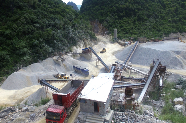 設(shè)備方案:ZSW490×110震動喂料機(jī)、PE750×1060鄂破機(jī)、GYS400圓錐式破碎機(jī)、3YK2870篩機(jī)。