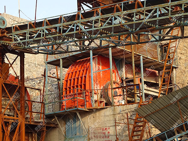 圖為河南中譽鼎力大產能石灰石錘式破碎機生產使用環(huán)境