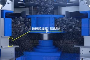 破碎腔加高150mm,對機制砂起到整形作用,粒型更優(yōu)。