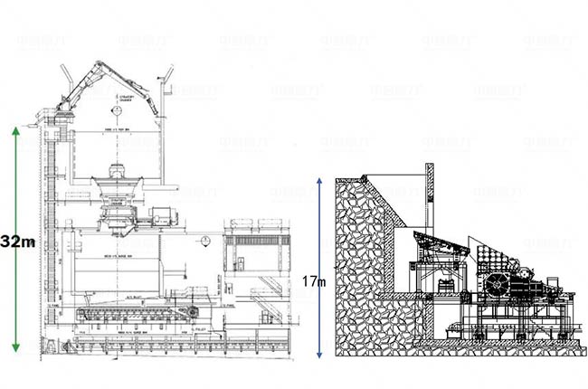傳統(tǒng)旋回破和臥式旋回建設(shè)高度對(duì)比