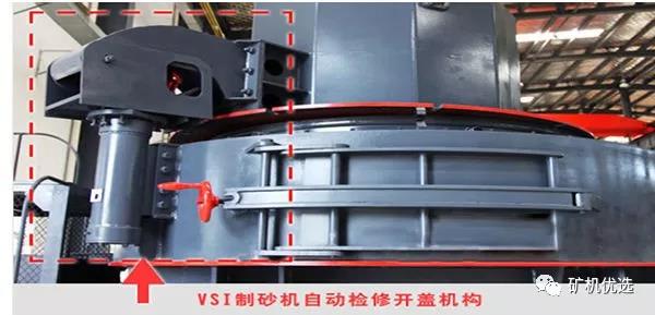 VSI4X和VSI5X制砂機(jī)均采用液壓裝置自動啟蓋,方便快捷移開上蓋,人工勞動強(qiáng)度,即使只有一人也可以輕松更換轉(zhuǎn)子及其配件,方便檢修,提高使用效率。