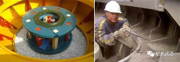 PCL為進(jìn)料,VSI有完進(jìn)料和進(jìn)料伴隨環(huán)形瀑落進(jìn)料兩種,VSI5X(第五代制砂機(jī))采用的是散料盤裝置,可快速實現(xiàn)給料和瀑落給料的轉(zhuǎn)換,減少停機(jī)調(diào)整時間,提率。VSI4X(第四代制砂機(jī))采用的是散料錐裝置,將散料錐卸掉可實現(xiàn)完進(jìn)料。