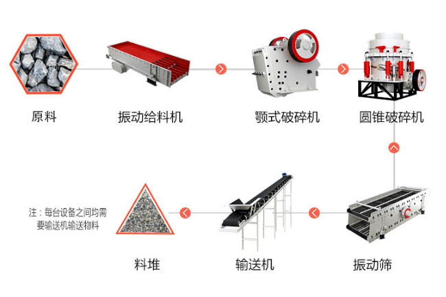 2、頭破:建筑垃圾先歷經(jīng)震動喂料機進入頭破機械pe顎式破碎機中,pe顎式破碎機能把大塊物料解決成小塊,以方便進入二級石頭機機械中。