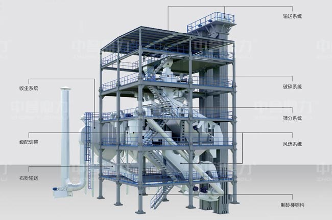 中譽鼎力樓式制砂機組成結(jié)構(gòu)有全封閉皮帶機、立軸式?jīng)_擊式制砂機、振動篩、風(fēng)選設(shè)備、收塵器、脈沖袋式除塵器、拌濕機、閉路循環(huán)風(fēng)選系統(tǒng)、開路風(fēng)選系統(tǒng)組成。