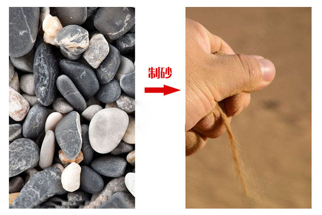 4.小于40mm的河卵石會由1140沖擊式制砂機制砂;
