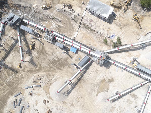 先,巖石由喂料機(jī)均勻地送進(jìn)碎石機(jī)進(jìn)行破碎,然后,產(chǎn)成的粗骨料由皮帶運(yùn)輸機(jī)運(yùn)輸至反擊式破碎機(jī)進(jìn)行深度破碎,整型破碎后的巖石進(jìn)礦山振動(dòng)篩 篩選分級(jí)出不同性能的石子,不粒度合格的石子返料進(jìn)反擊式破碎機(jī)又一次破碎,大塊巖石經(jīng)料堆由振動(dòng)喂料機(jī)均勻地送進(jìn)顎式破碎機(jī)進(jìn)行初級(jí)破碎,初級(jí)破碎后的巖石由皮帶運(yùn)輸機(jī)送入反擊式破碎機(jī)進(jìn)行深度破碎;整型破碎后的巖石由皮帶運(yùn)輸機(jī)送進(jìn)礦山振動(dòng)篩 進(jìn)行篩選分級(jí),篩選分級(jí)出多種不同性能的石子,粒度合格的石子由成品皮帶運(yùn)輸機(jī)送往砂石堆;不粒度合格的石子由皮帶運(yùn)輸機(jī)返料送入反擊式破碎機(jī)進(jìn)行又一次破碎,形成閉路多次循環(huán),成品粒度可根據(jù)用戶的需要進(jìn)行組合和分級(jí),為保護(hù)環(huán)境,可搭配輔助的除塵機(jī)械,